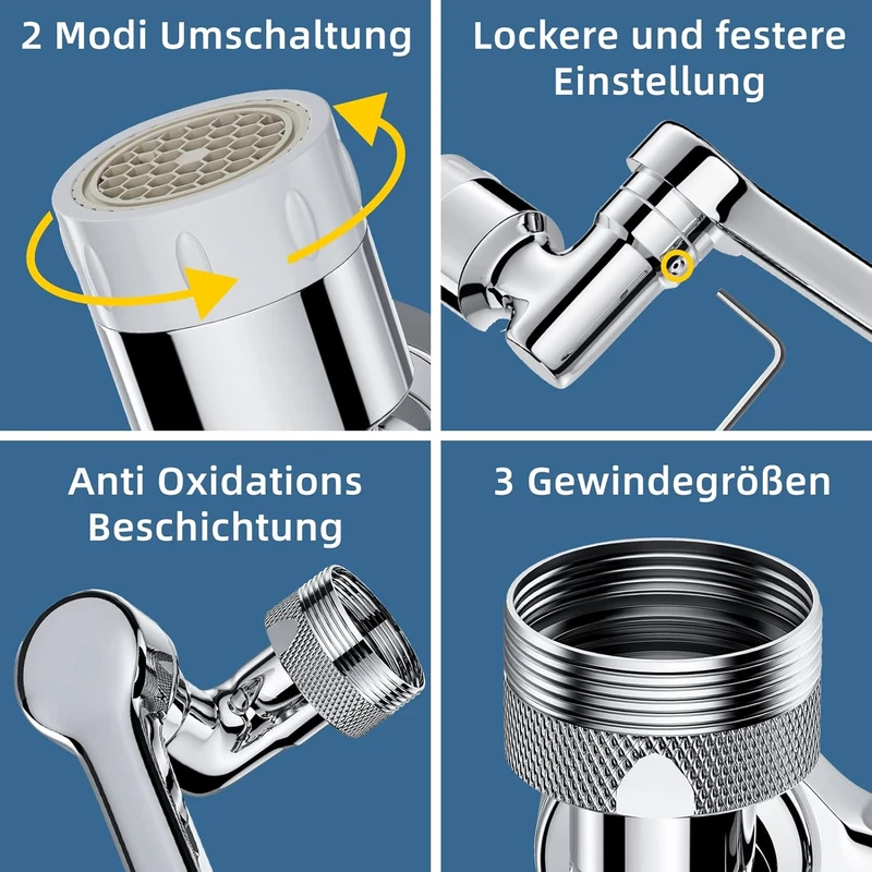 این شیر آب دارای چند حالت مختلف در چرخیدن است که می تواند آب را در زاویه های مختلف (چرخش 360 درجه ) خارج کند.